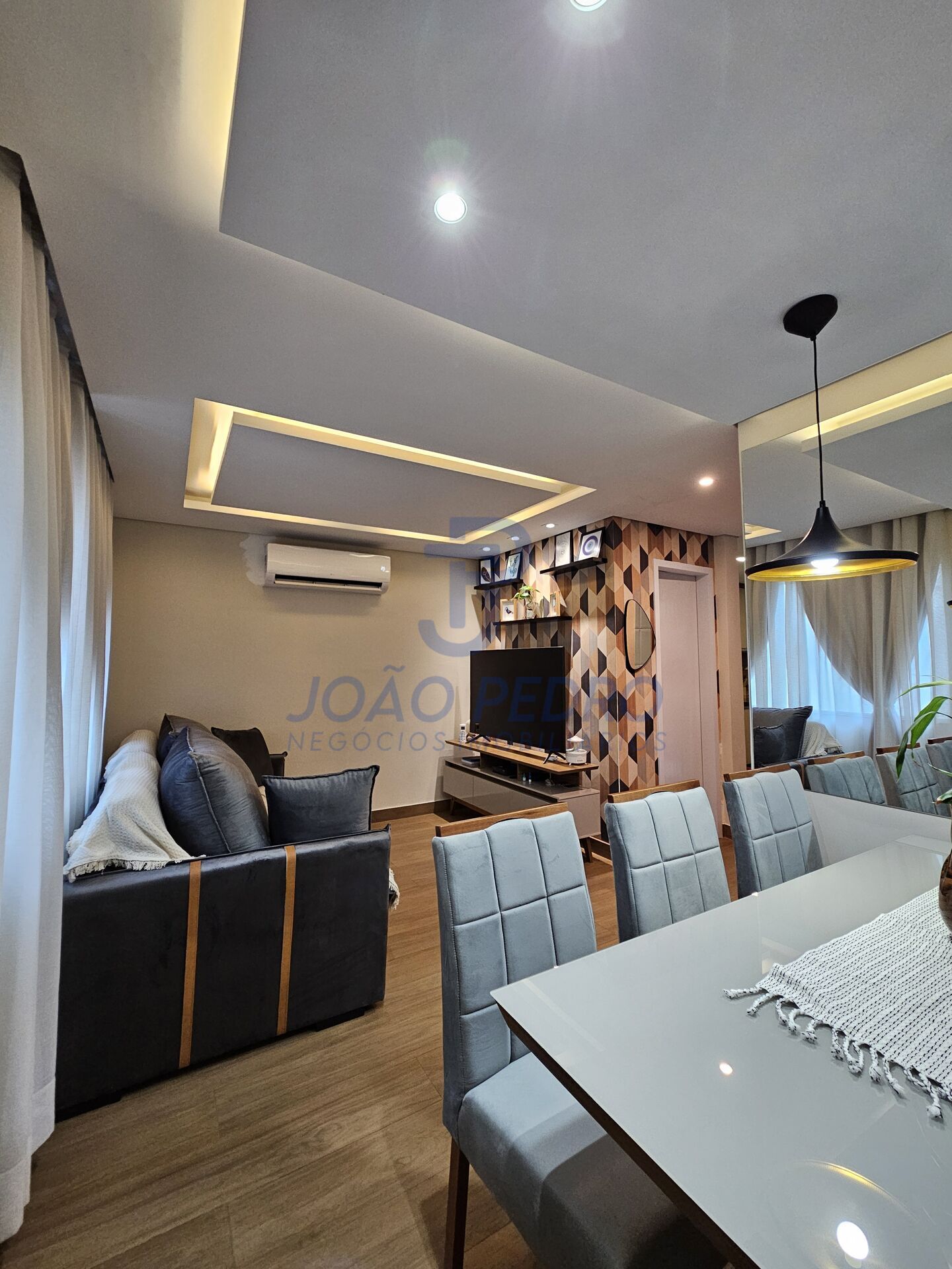 No segundo pavimento, um hall distribui os 3 dormitórios, sendo uma suíte, todos com marcenaria planejada de alta qualidade — e um dos quartos já vem com ar-condicionado instalado. O sobrado ainda possui sistema de energia solar, ótimo para economia e sustentabilidade, acabamentos modernos e impecáveis, além de 2 vagas de garagem.